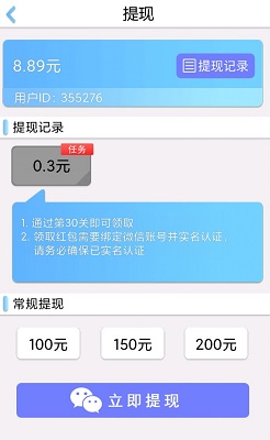 下载APP,合成18级可提现0.3元,要看很多广告,不过玩的过程中途还有个每日提现,比较容易达到要求,也可以提现0.3元!