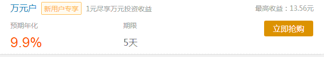得10000元体验金的活动,10000元体验金可产生5天共计13.56元的收益,能直接提现到银行卡里,之前参与过活动的人都已经成功提现。活动时间:短期有效