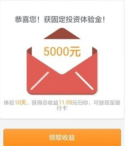 在“我要投资”里可看到所领取到的5000元体验金,坐等10天后赎回利息,并且提现即可。