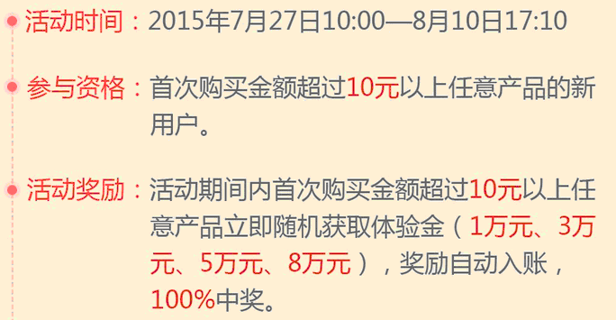 我在体验过程中,不知道是不是参与的人数有点多,略感不是那么顺畅,有点卡顿,不过最终还是顺利完成,只等利息到账提现了。我只抽中了1万元体验金,运气好的如果抽中8万元体验金就有72元的利息。