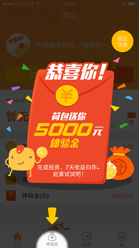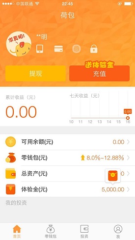 荷包是深圳荷包金融信息咨询有限公司旗下的一款理财app,目前新用户注册送5000元体验金,分享一下又可以获得2000元体验金,一共可免费获得7000元体验金预计7天产生10元左右的利息,活动出来有段时间了,前面的小伙伴都成功提现了!
