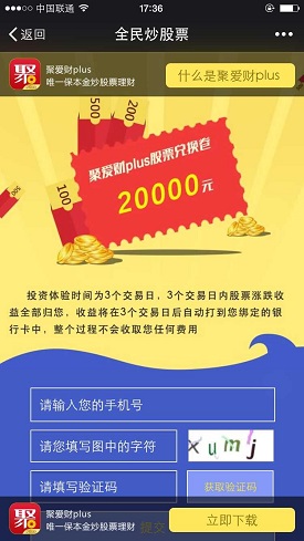 3.输入手机号完成领取,下载聚爱财plus的app。
