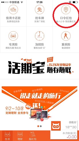 5.点击“口令红包”,在“输入口令,赢取话费红包”输入口令,点击兑换。