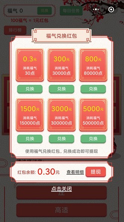 先在顶部“每日任务”签到领10福气,然后答题凑到30。