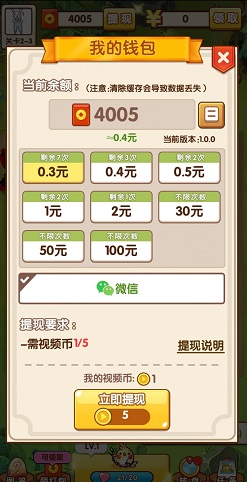 提现0.3元,秒到微信零钱!