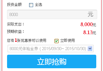 新用户进入后注册为会员并领取,然后完成实名认证,点击“我要投资-银票通”选择4天的标(你可以试着多其他时间长点标,看能不能投投成功),使用这8000元购买即可。