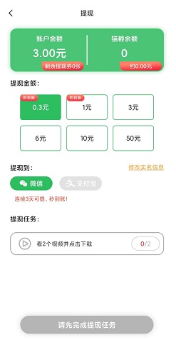 有人可能看提现那里以为是还要连续登录3天,其实不是,是连续3天可提,不知道是不是次日又能提三毛呢。