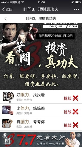 微信关注“东虹桥金融”(dhqjinrong),点击左下角菜单栏“Hot推荐”-“挑战叶问”进入活动页面。