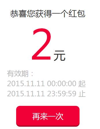 活动时间:2015年10月24日00:00:00-11月10日23:59:59(每天可中1个)