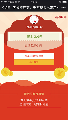 至于邀请奖励,上面也说的并不明确,经测试邀请得的奖励都是10元现金券,没什么卵用!
