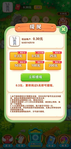 提现0.3元,秒到微信零钱!付款商户“魔方乐游”。