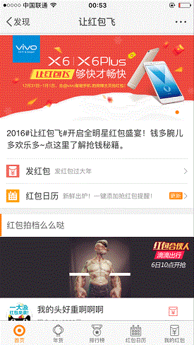 在手机上打开微博,登录后,点击“发现”-“让红包飞”即可进入到活动页面。