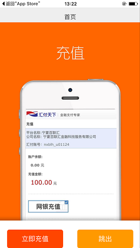 打开后可看到活动详情,可直接在网站上注册,也可以下载财富观app后再注册。登录app后,按提示开通第三方支付,点击“立即充值”,如下图: