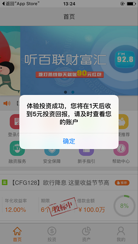 活动时间:短期有效(2016年3月14日规则改为100元起提现,体验金收益要投资500元才给,实在是无耻至极,永久拉黑!)