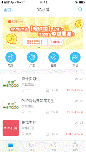 实习僧是由萌想(上海)网络科技有限公司推出的大学生找实习的平台,目前新上线理财僧功能,新用户可免费领取10000元体验金,预计5天可产生4.8元利息,据说可直接提现,但中途可能改变规则等。