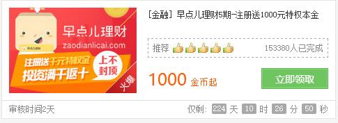 3,找到“早点儿理财”,这个项目,只需要注册申请,即可领取奖励。