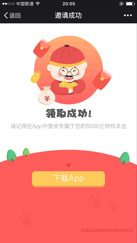 下载微钱进app,登录后,在“我的账户”-“特权本金”看到5000元体验金的收益情况。