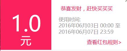 炎炎夏日,淘宝正举办“淘得6才是活得6”红包活动,算是给大伙送来了一丝清凉。活动期间每天都可以抽一次,基本都是100%中奖,至少1元,运气好的可以抽到6.6元,66元,666元,可以多张一起叠加使用,还是不错的!