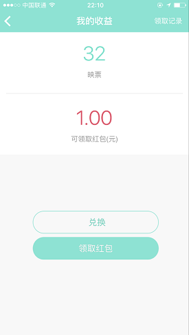 4.在“我的收益”里即可看到,映票已经到账,点击“领取红包”会提示你,到微信里关注“映客”领取。