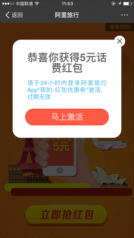 阿里旅行已经搞过很多活动,都是一些旅游、酒店类的抵扣红包,对我这样万年宅在家的屌丝,也没什么卵用。这次为了造福我这样的苦命孩子,特地赠送5元话费券,满10即可使用这个券,也就是花5元即可充值10元话费!