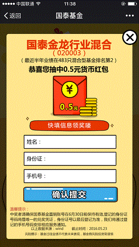 2.抽中后,填写相关信息,当然一定要真实。要和你在国泰基金开户的信息或者准备开户用的信息一致。