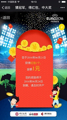 中银易商理财是中国银行旗下的理财平台,实力就不用我多说了。目前正在举办“激情欧洲杯,猜冠军、得红包、中大奖”活动,新老用户都可以参与,我是老用户只抽中了1元,据其他新朋友反映,他们至少都是8元,还有不少抽到20元的。红包奖励到账后,可以直接赎回到银行卡!