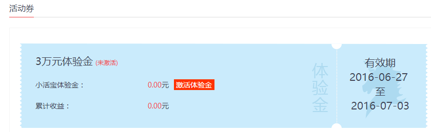 我只抽中了3万元体验金,抽中后,回到活动页面,也就是你财富的官网,在“我的账户”下方“活动券”,可看到你抽中的体验金: