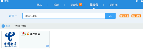1.在电脑上打开你的QQ,点击“查找”选择“找人”或者“找服务”都可以,搜:800010000。