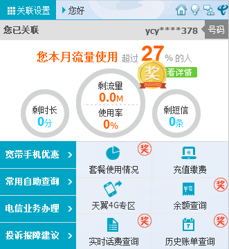 4.关联好后,回到首页,可看到如下图,一些服务带有“奖”标志。