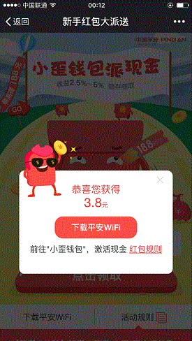 平安wifi是中国平安集团推出的一款移动互联网APP产品,目前新用户开通平安wifi里的小歪钱包后,即可拆红包,金额随机,一般都抽中的3.8元,最高可抽中188元,可以直接提现到银行卡,而且奖励秒到,提现也是秒到,非常给力!