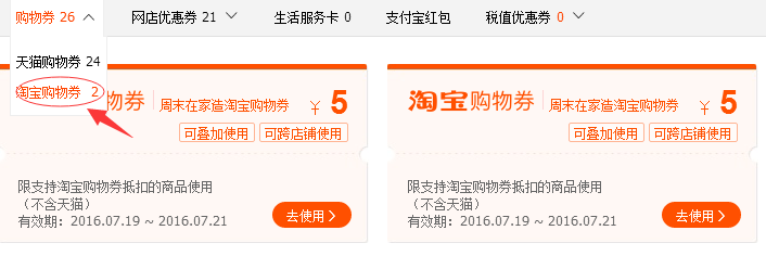 点击“去使用”即可找到支持使用这个淘宝购物券的商品,记得这个券7月19日才可以开始使用!