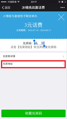 4.点击后,出现下图,复制 兑奖码,点击“兑奖地址”回复兑奖码,并按提示回复手机号即可。