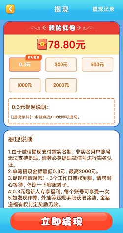 提现0.3元,秒到微信零钱!付款商户“点金游戏”。