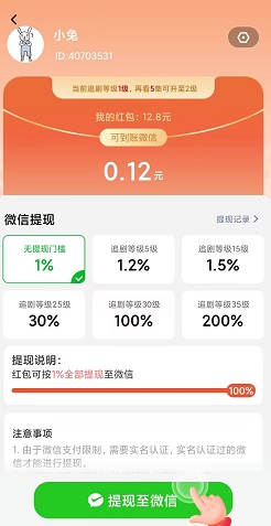 最低0.1元,全部提现秒到微信零钱!付款商户“服务平台”。
