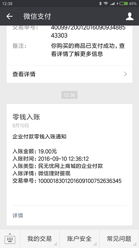 8.微信钱包提现,10元起提,秒到帐,本人已经提现,确实秒到。
