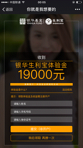 标签:免费领取 app 体验金 基金 银华生利宝 话费