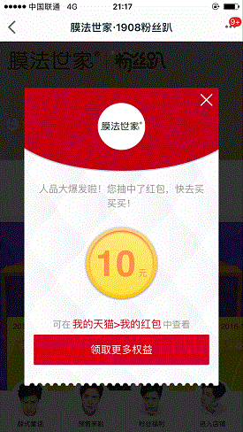 双十一的活动第一波每天都可以参与,现在又来第二波:粉丝趴。由于这个活动中奖的奖品价值相对来说更高一点,因此单独介绍下这个活动的参与方法,同样每天都可以参与,一般一个号最多一天可中2次,有红包,也有实物奖励!