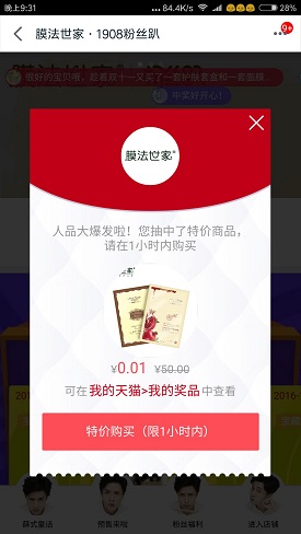 5.抽中的红包11月11日当天可购物时直接抵用现金,实物奖励只需要支付0.01元即可包邮到家!