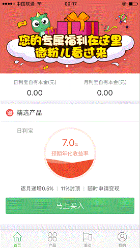 这个平台最低100元提现,充值的话,也只能先购买它的理财产品,所以我们必须接着做。