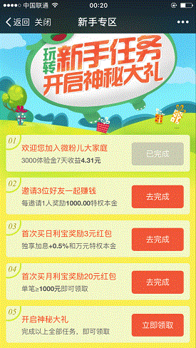 6.你可以现在,也可以等到7天后利息到了,再回到第3步的界面,点击“精彩活动”-“新手专区”可看到有: