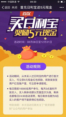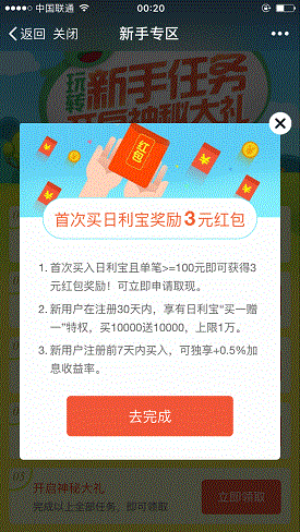 插曲:当时我还没充值100元购买“日利宝”不知道怎么看到有下图这个活动。