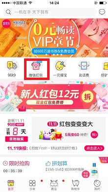 3.如上图,下载楚楚街app,老用户直接登录,新用户先注册,然后在首页找到“微信红包”点进去领取即可。