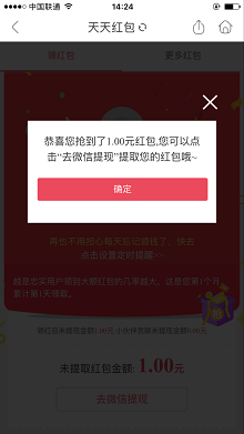 最后每天记得去领红包就行了,如果接下来一天只领取到几毛,就累计到1元以上再提现!