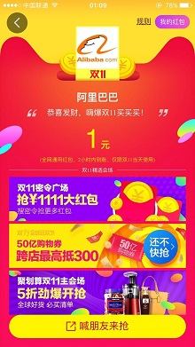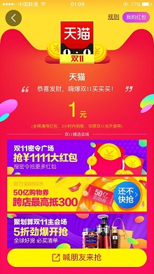 所有获得的红包都是双十一当天购实物时直接抵用现金的哟!