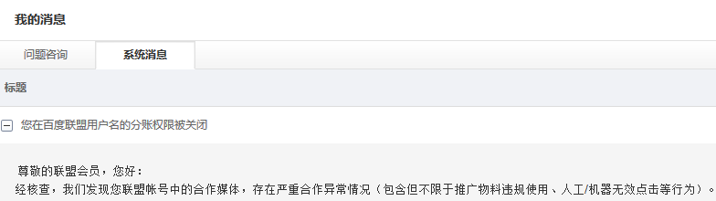 这意思就是我的百度联盟被封了,以后通过百度联盟赚几块钱的广告费也就没了!!!