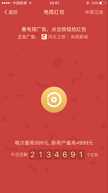 支付宝最近正在疯狂赠送“电视红包”,也就是打开支付宝,找到一个“电视红包”跟着上面提示,收看指定的电视节目。即可免费领取最高4999元红包,不过一般一次可中0.2-0.4元,每天最多可中8个,据说余额宝的新用户中的金额更大!