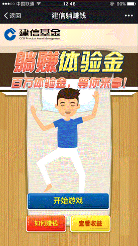 建信基金正举办“躺赚体验金”的活动,在微信里玩个小游戏后,可免费领取19999元体验金,预计有5元左右的收益,可直接提现。有人觉得这个游戏,也有人(比如我这样的手残党)会有点抓狂。