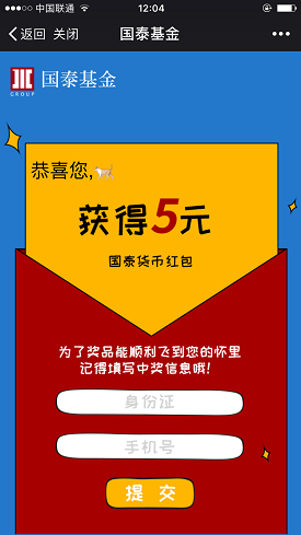 3.抽中后,填写你在国泰基金开户的SFZ号和手机号。