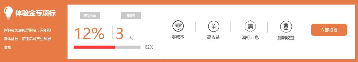 活动时间:长期有效(2016年12月6日起注册的,体验金收益要投资才能提现!之前的可直接提)