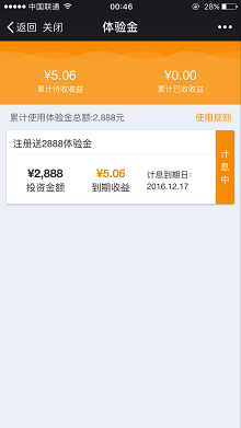 3.点击“立即查看”会自动帮你投标,点进入你也能看到体验金收益是5.06元,还有到期的时间。